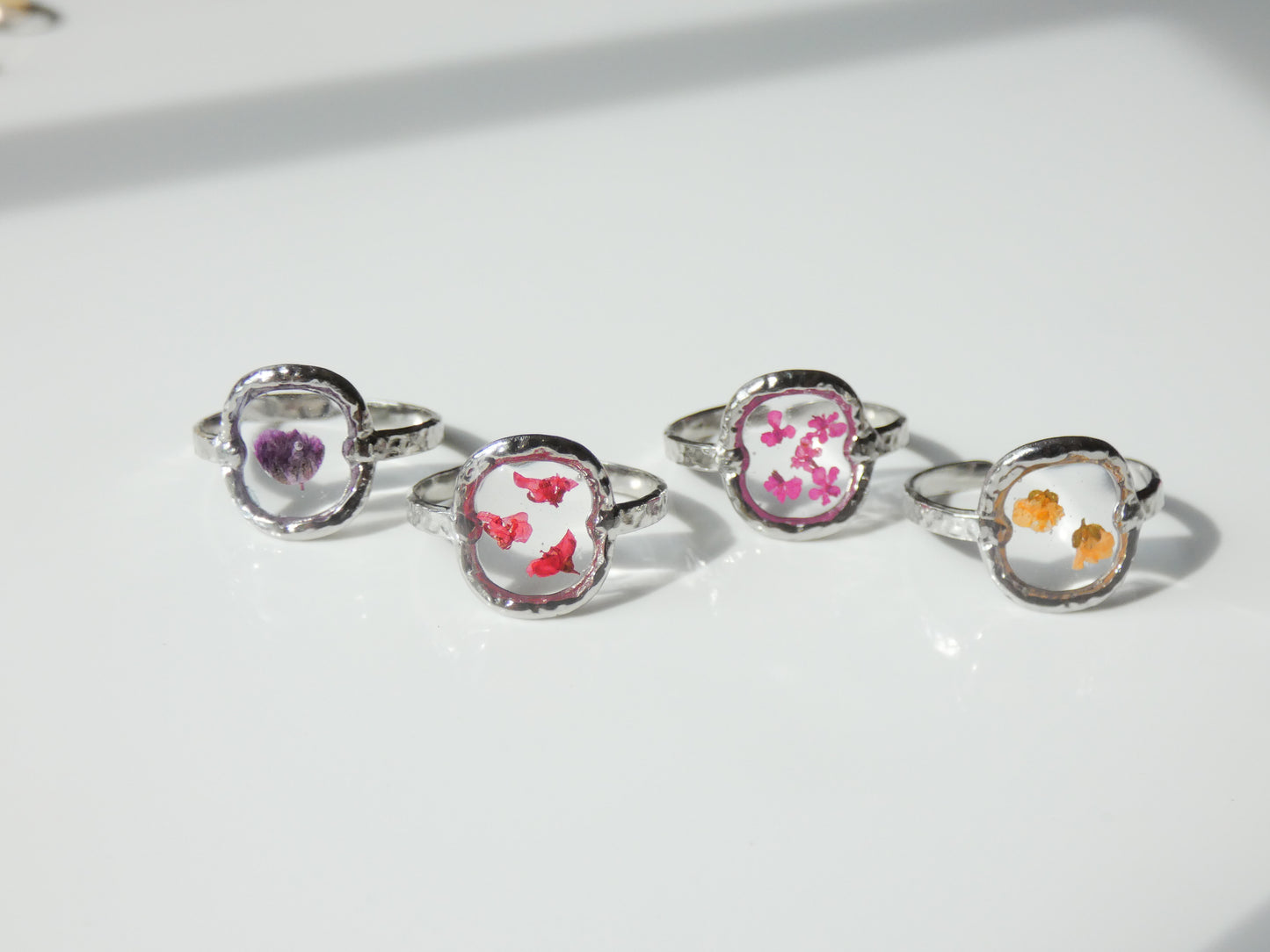 Show off your unique style with one of our Pressed Flower Adjustable Rings. From dainty and colorful to neutral and everyday, these beautiful pieces feature pressed flowers encased in a durable, hypoallergenic resin and come in both 14k gold and nickel free options. Elevate your look and express your creativity with our timeless and elegant rings.